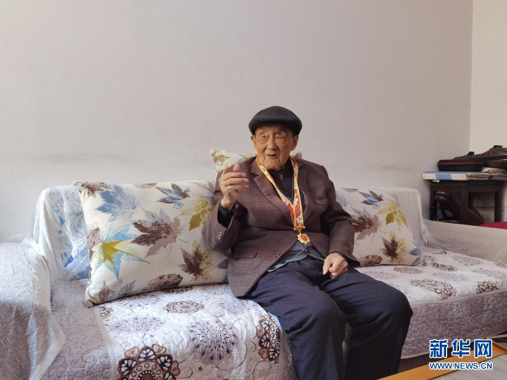 渡江支前工作人员、93岁的离休干部陈少宽在芜湖市的家中(2021年3月25日摄)。