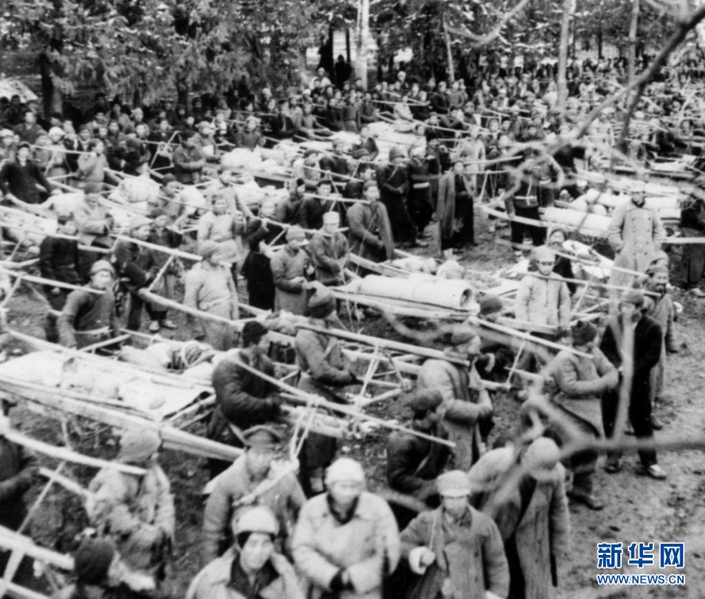 参加渡江作战的民工担架队整装待发(资料照片)。