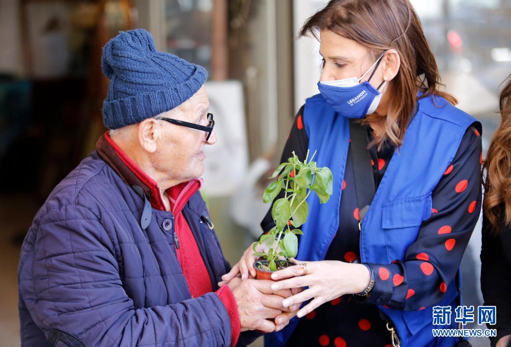 当日是世界地球日,“明日黎巴嫩”协会在贝鲁特向人们分发秧苗,提醒人们保护环境。