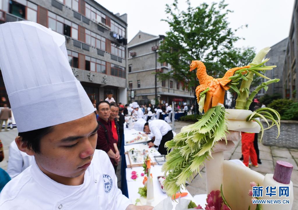 4月24日,厨师在发布仪式现场展示刀工技艺。