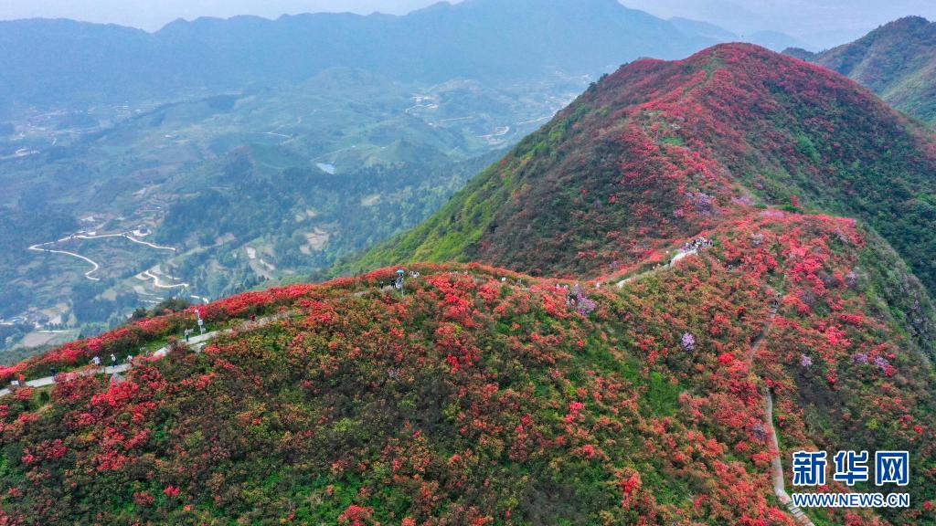 近日,贵州省黔东南苗族侗族自治州丹寨县龙泉山景区的杜鹃花迎来盛花期,美不胜收。为方便游客赏花,4月23日至5月4日,龙泉山脚下的丹寨万达小镇举行一年一度的中国丹寨杜鹃花节,期间将举办光绘摄影、杜鹃花海汉服巡游等30余项活动。
