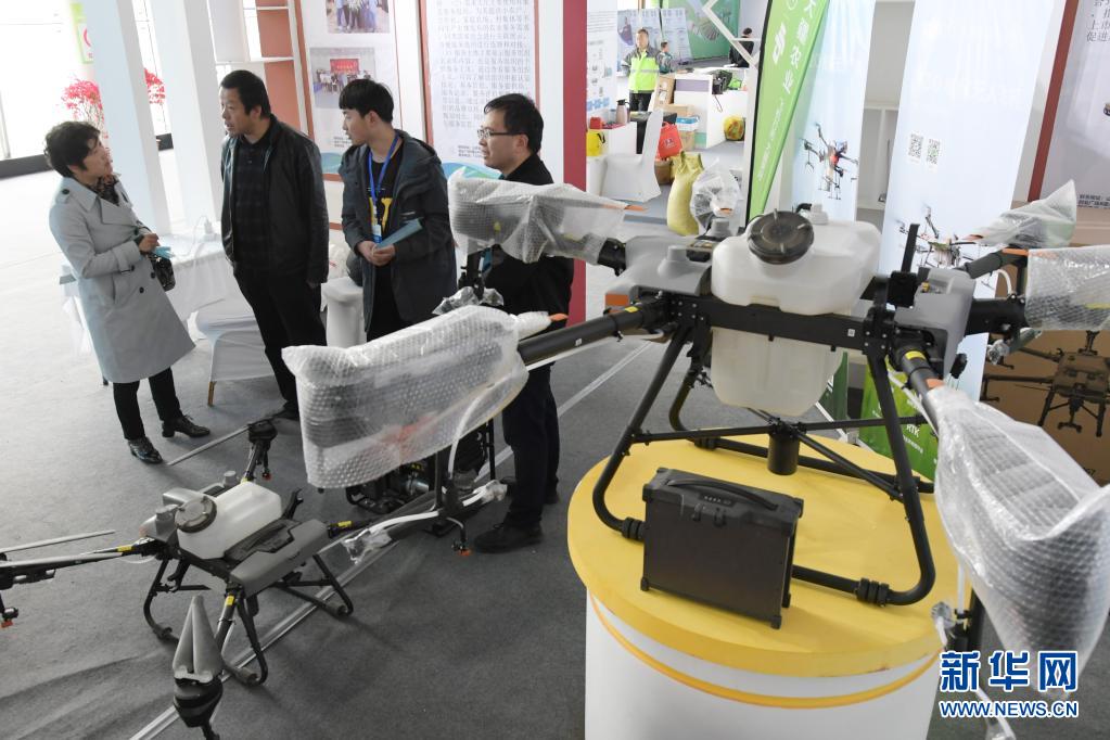 4月24日,在甘肃临夏乡村振兴设施设备展示推广活动上,参观者在了解农用无人机。