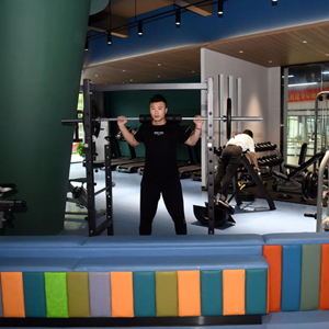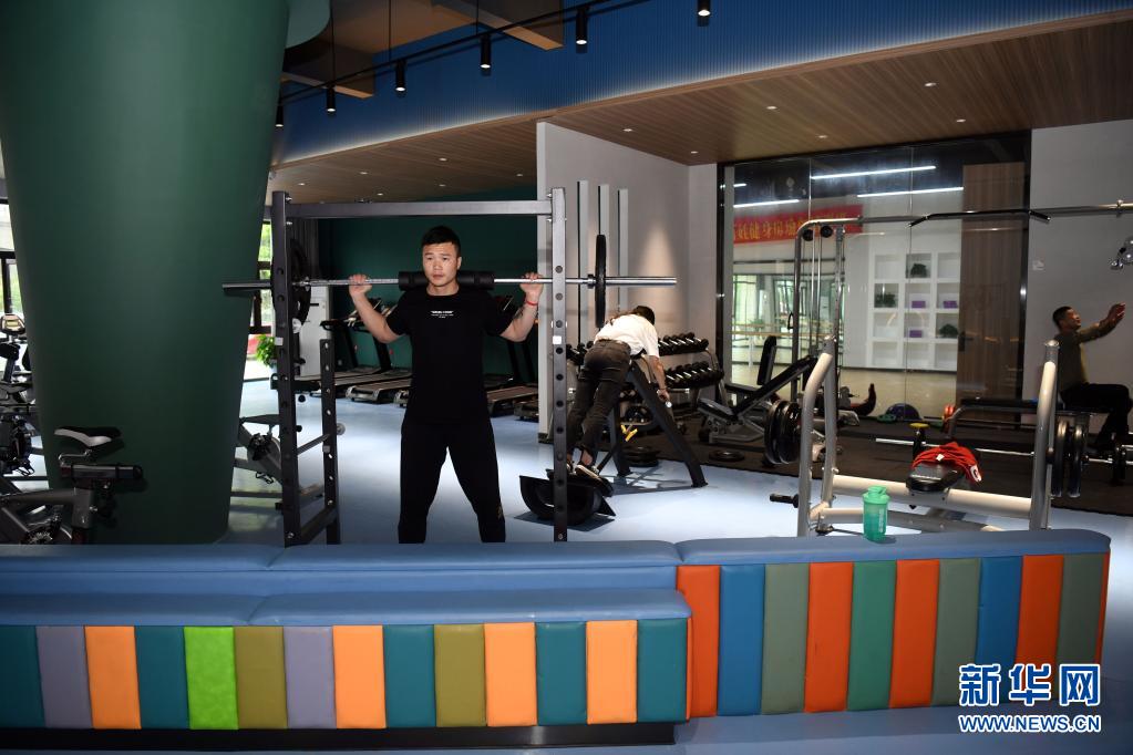 4月24日,居民在浔南社区幸福邻里中心内运动健身。