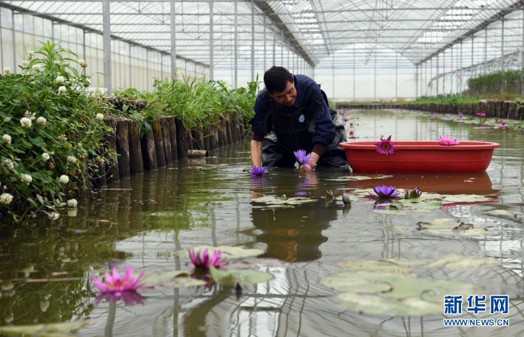 4月24日,农民在南浔区绿藤生态园采摘水莲花。