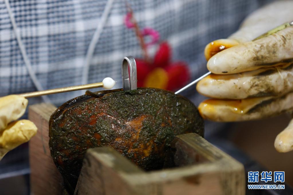 4月24日,泗洪县上塘镇的蚌农在向阳水库边的帐篷内种蚌。