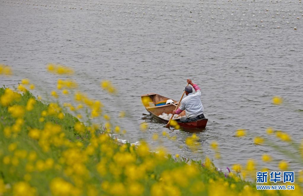 4月24日,泗洪县上塘镇的蚌农在向阳水库管理珍珠蚌。