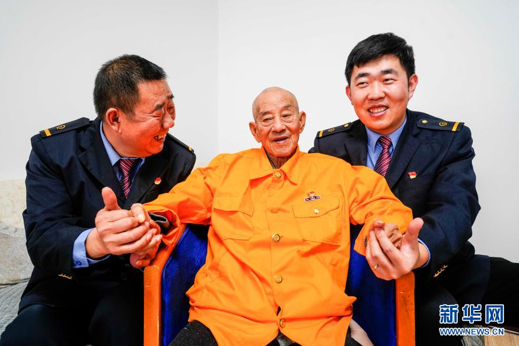 牛家山(中)、牛新远(左)和牛瑞清在家中合影(2月26日摄)。