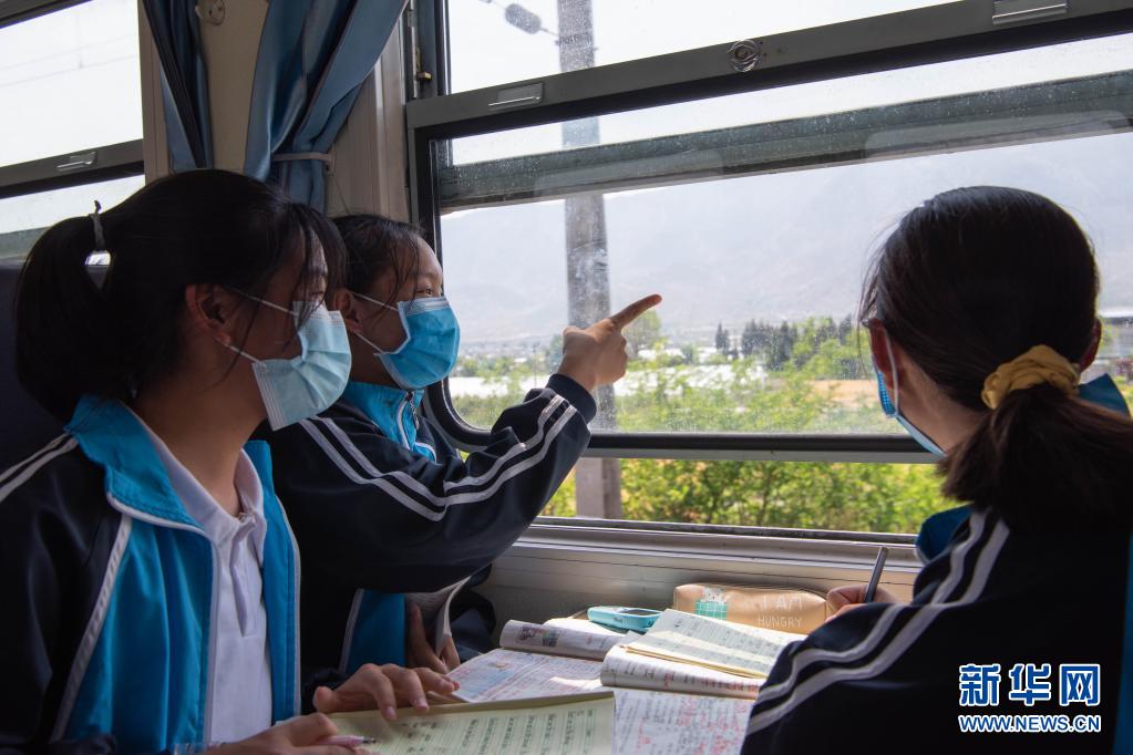4月15日,在5634次列车上,几名学生在学习间隙欣赏远处的景色。