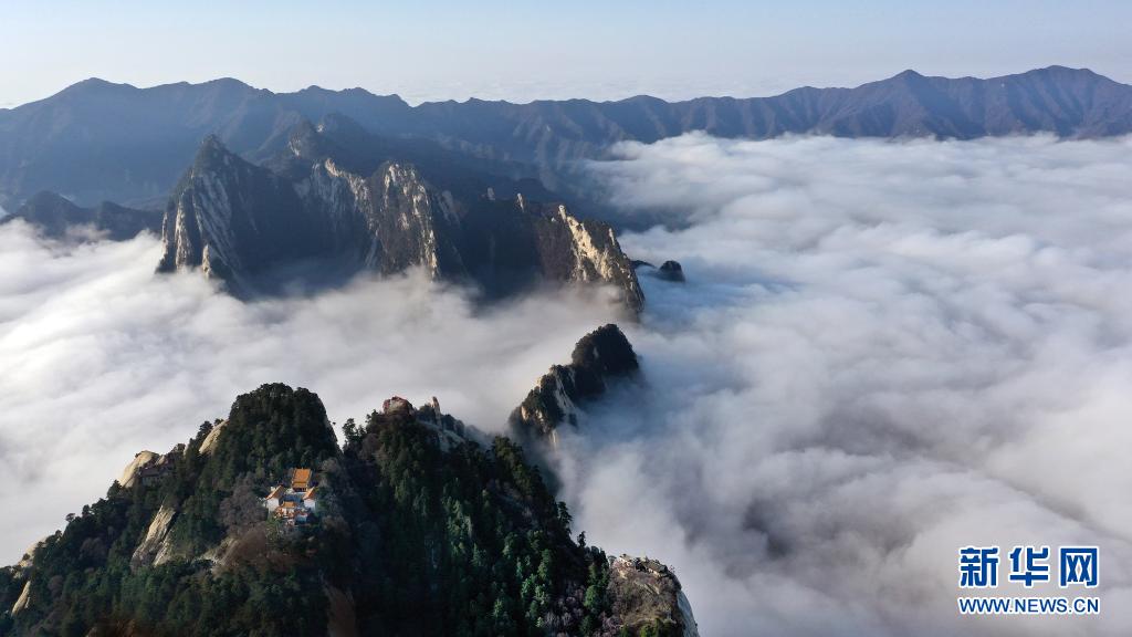4月22日,华山出现壮丽的云海(无人机照片)。