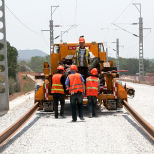 目前,中老铁路国内段铁轨铺设施工正忙,在云南省西双版纳傣族自治州景洪市大渡岗乡大荒坝村,承担铺轨任务的中铁一局工人昼夜施工,加紧向前推进。