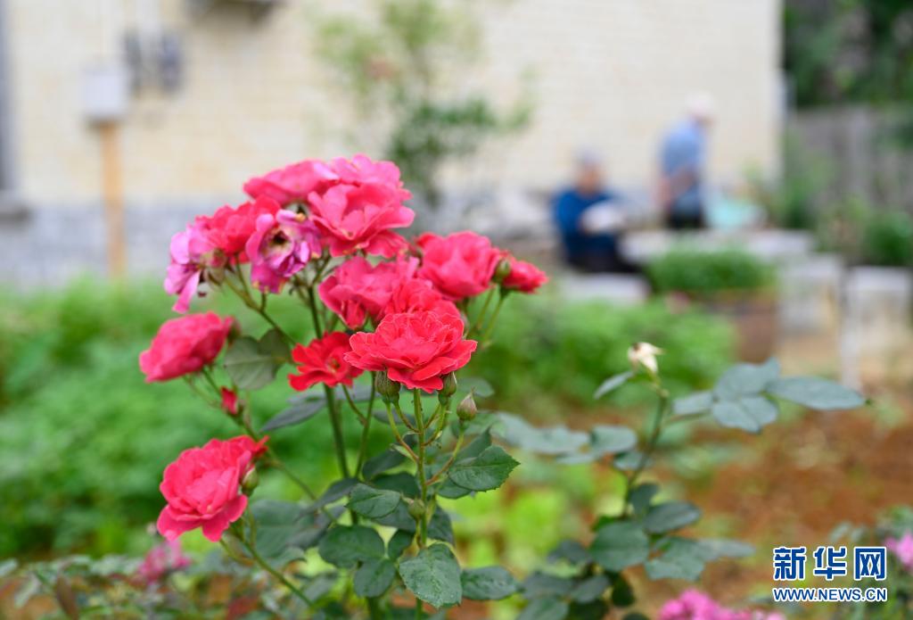 4月24日,在广西柳州市柳江区进德镇乐山村,村民在自家庭院里劳作。