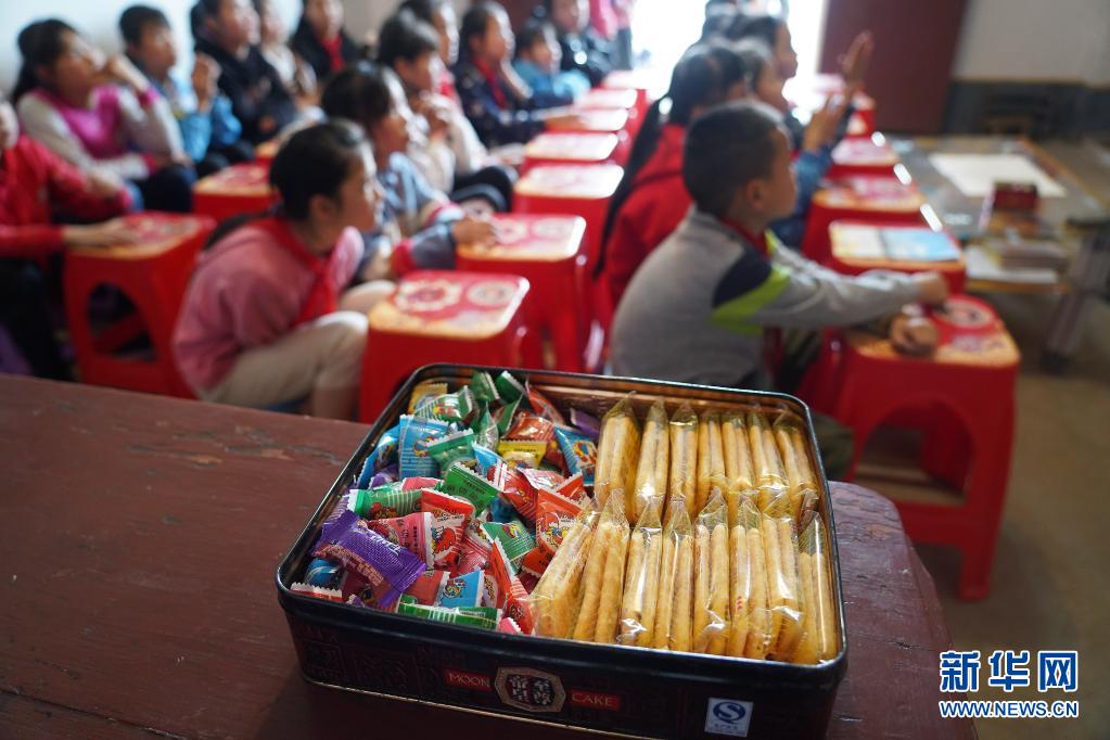 缪延相给孩子们准备了课间零食(4月20日摄)。