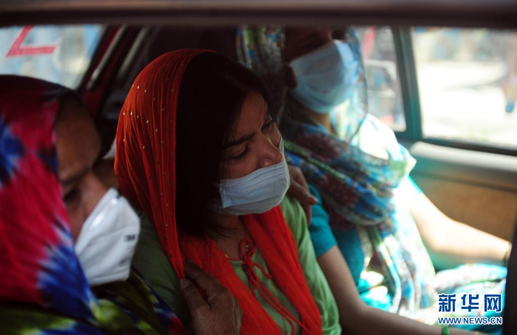 4月24日,在印度新德里一家医院,因感染新冠去世病患的家属悲痛不已。