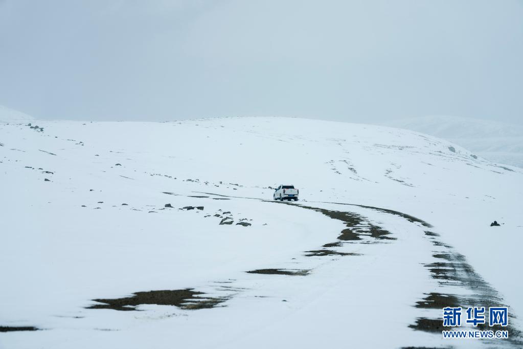 4月23日,祁连山国家公园沙龙滩管护站的生态管护员驾驶车辆在巡护途中。
