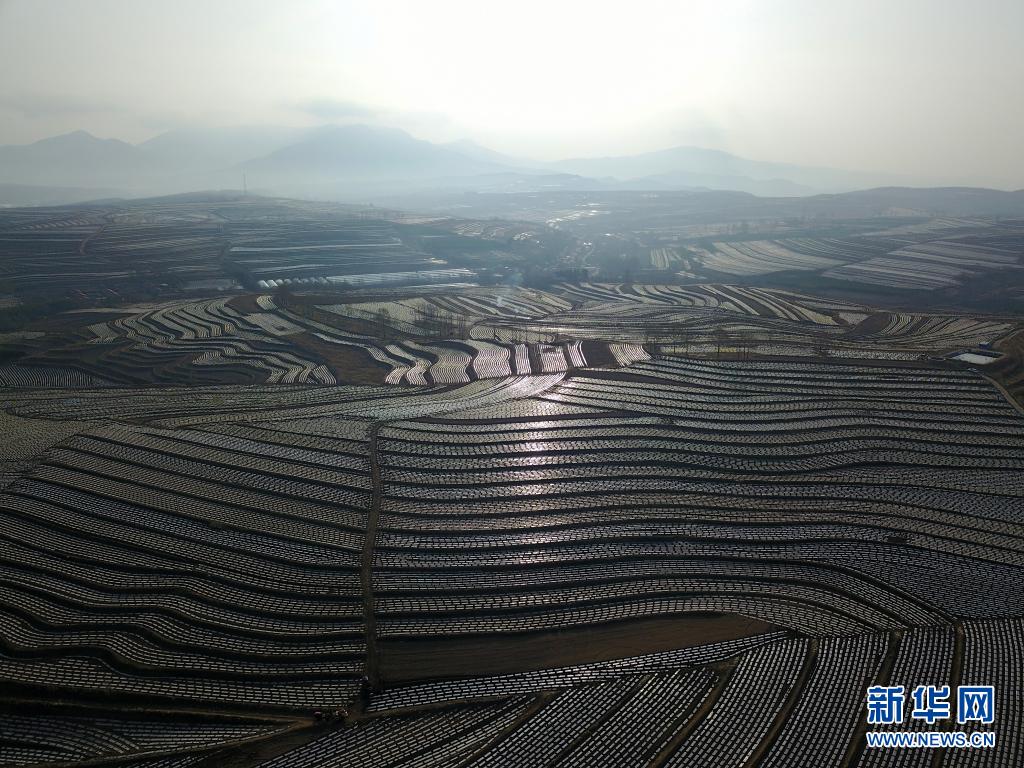 近期,在“中国马铃薯之乡”河北省围场满族蒙古族自治县,农民用地膜将种植的马铃薯精心覆盖,在阳光的照射下,农田层次分明,构成一幅幅美丽的田园图画。