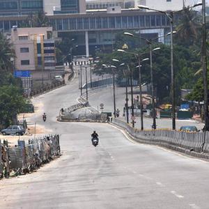 这是4月25日在印度班加罗尔拍摄的“封城”中空荡的街道。