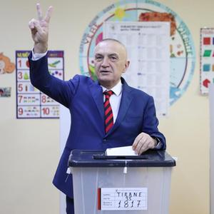 4月25日,阿尔巴尼亚总统梅塔在地拉那一处投票站投票。