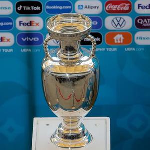 足球——欧锦赛奖杯在布加勒斯特展示