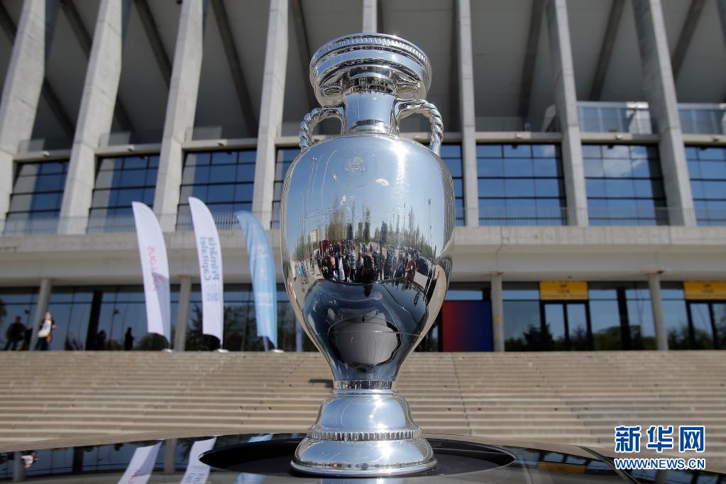 4月25日,欧锦赛冠军奖杯在罗马尼亚国家体育场前展示。