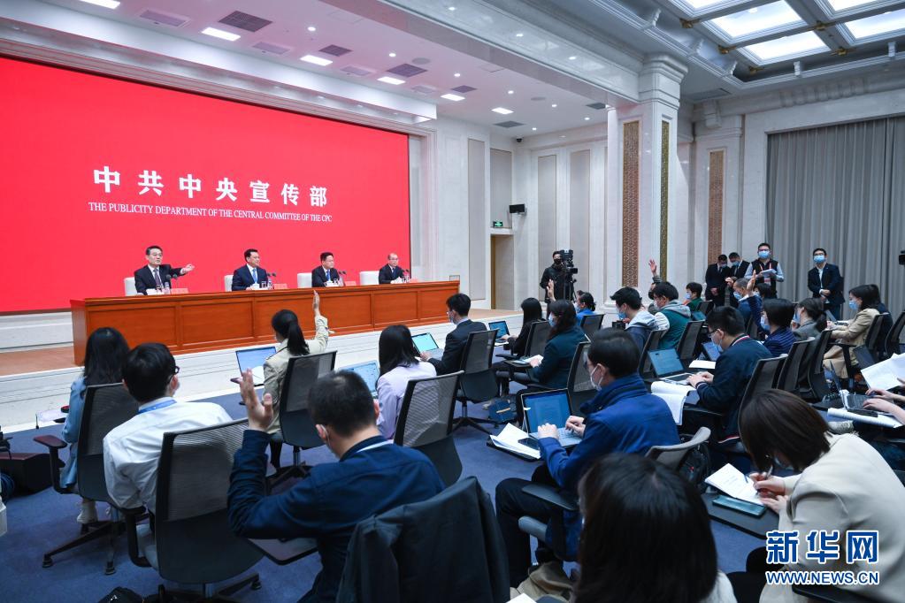 4月26日,中共中央宣传部举行新闻发布会,请中共浙江省委书记、省人大常委会主任袁家军,中共浙江省委副书记、浙江省人民政府省长郑栅洁,中共浙江省委常委、宣传部部长朱国贤围绕守好“红色根脉”,打造“重要窗口”主题介绍情况,并答记者问。新华社记者 陈晔华 摄