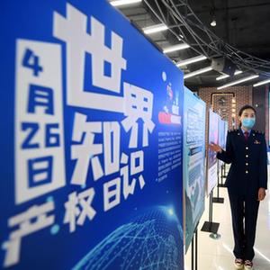 4月26日,工作人员在活动现场向市民普及知识产权知识。