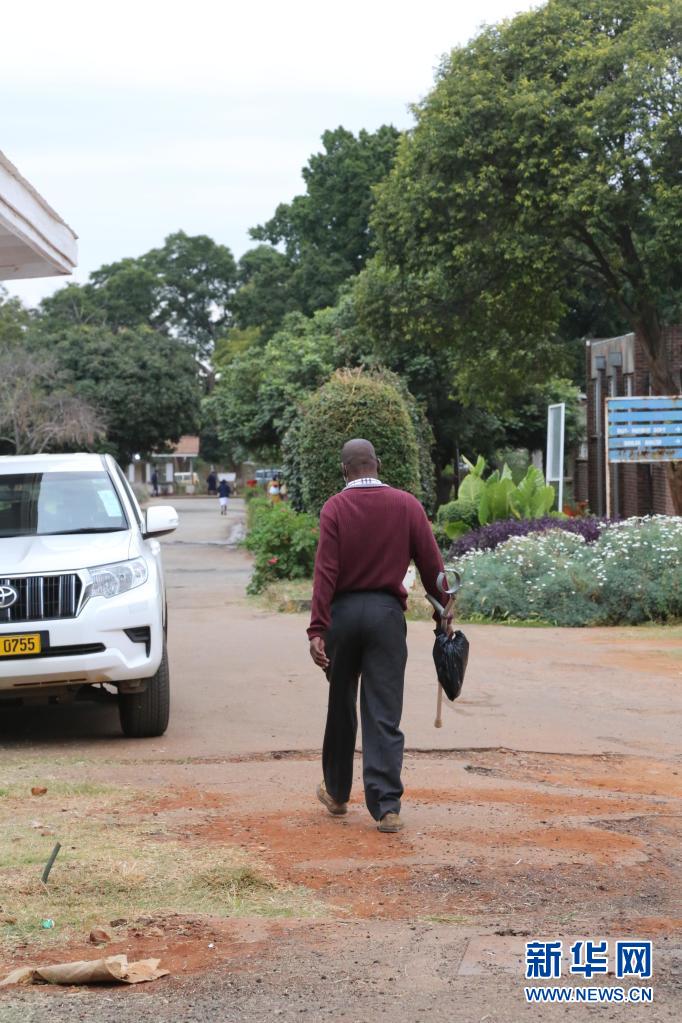 4月20日,在津巴布韦首都哈拉雷的帕里雷尼亚图瓦医院中医针灸中心,患者约翰·姆邦多扎接受针灸治疗后离开。新华社记者 张玉亮 摄