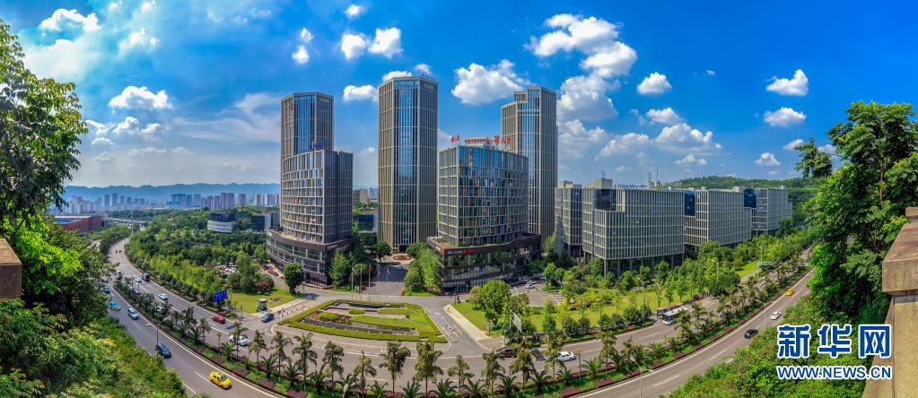 中国(重庆)自由贸易试验区内的重庆两江新区数字经济产业园全景图(资料照片)。地处“一带一路”和长江经济带联结点的中国(重庆)自由贸易试验区,构建“陆上国际贸易规则”初显成效、营商环境持续优化,新兴产业集群加速形成,对西部地区开放发展的示范带动效应正在显现。