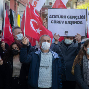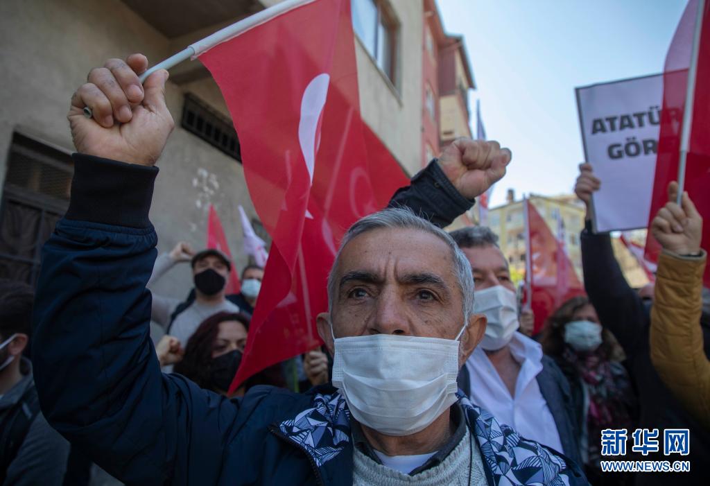 4月26日,土耳其民众在伊斯坦布尔集会抗议美方称亚美尼亚人遭杀害为“种族灭绝”。