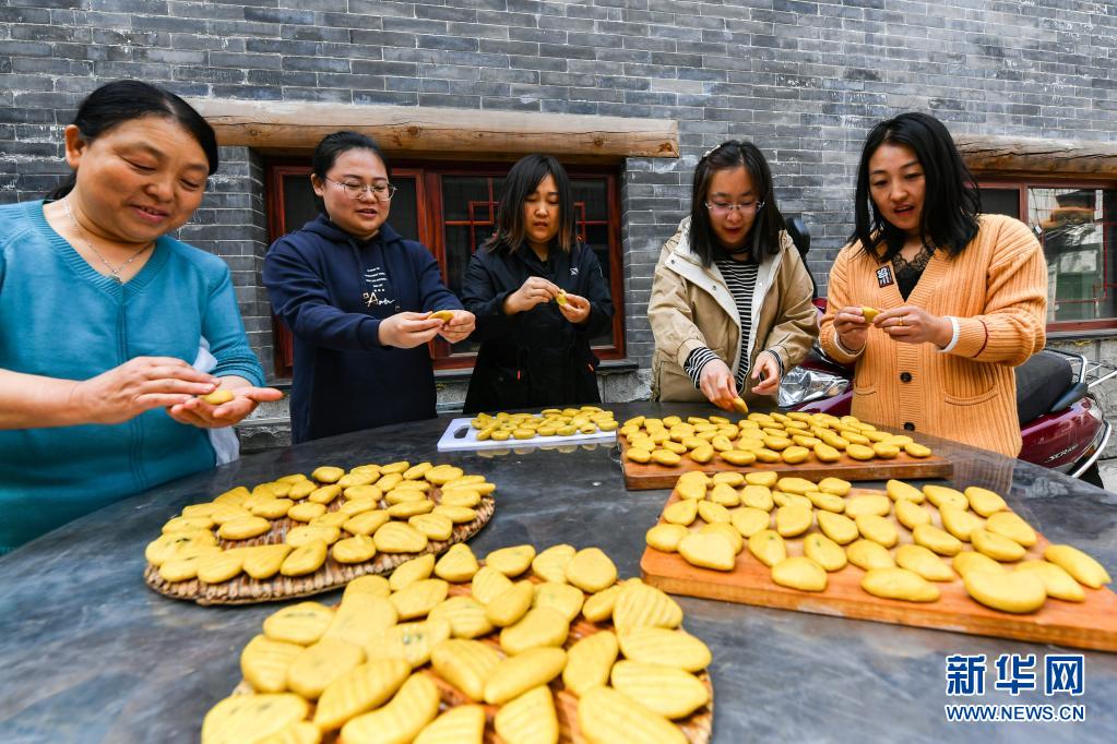 胡在忠的家人们为寿宴包油糕(4月24日摄)。新华社记者 曹阳 摄