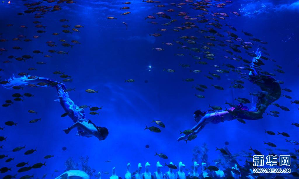 4月27日,乌克兰演员在合肥海洋世界进行美人鱼表演。