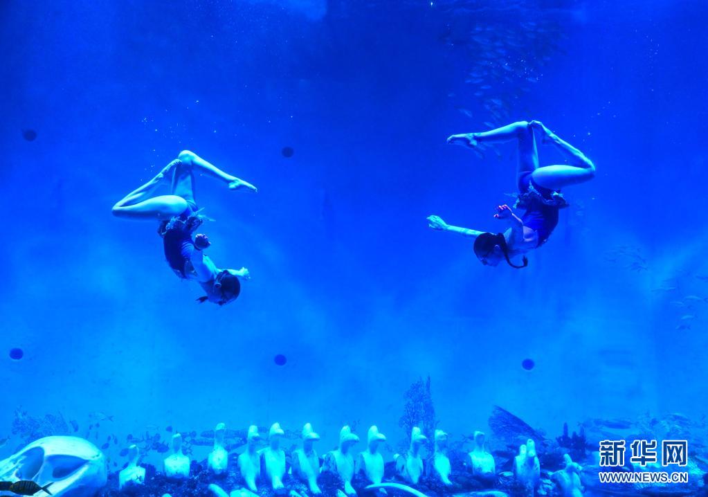 4月27日,乌克兰演员在合肥海洋世界表演水中芭蕾。