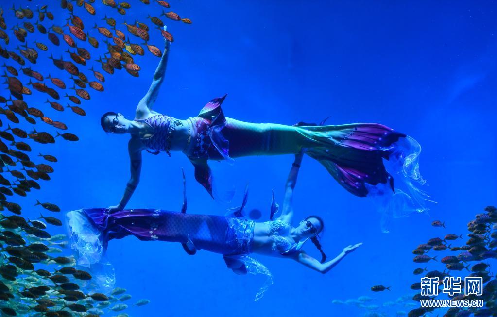 五一假期将至,六位来自乌克兰的演员在合肥海洋世界正式开启花式跳水秀、水中芭蕾、美人鱼表演等节目,吸引游客前来观赏异域风情表演。