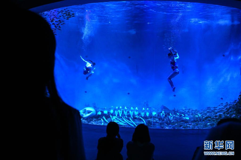 4月27日,观众在合肥海洋世界观看乌克兰演员表演水中芭蕾。