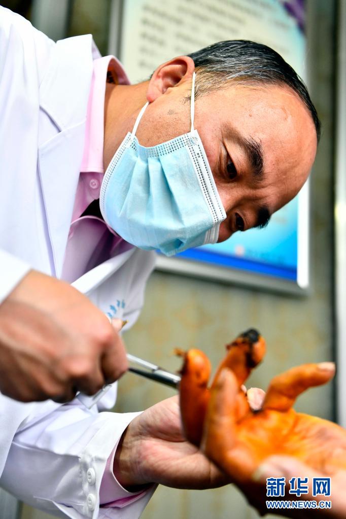 4月26日,在临沂市沂水县院东头镇院东头村卫生室,乡村医生张德庆在为患者治疗。新华社记者 郭绪雷 摄