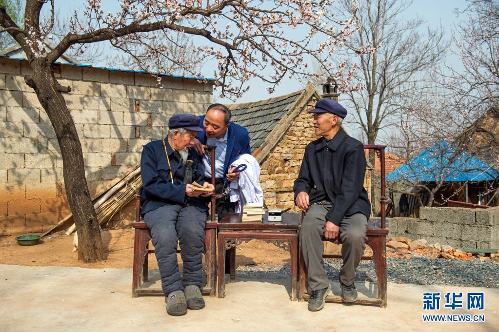 在临沂市沂水县院东头镇院东头村,乡村医生张德庆和爷爷张道立(左)、父亲张在吉(右)在一起(2018年3月27日摄)。如今张道立已去世。新华社发(饶琦 摄)