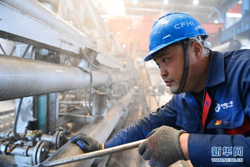 中国一重热处理操作工王国峰在作业中。“70后”王国峰曾获“中央企业劳动模范”“龙江工匠”“龙江技术能手”等称号(4月20日摄)。