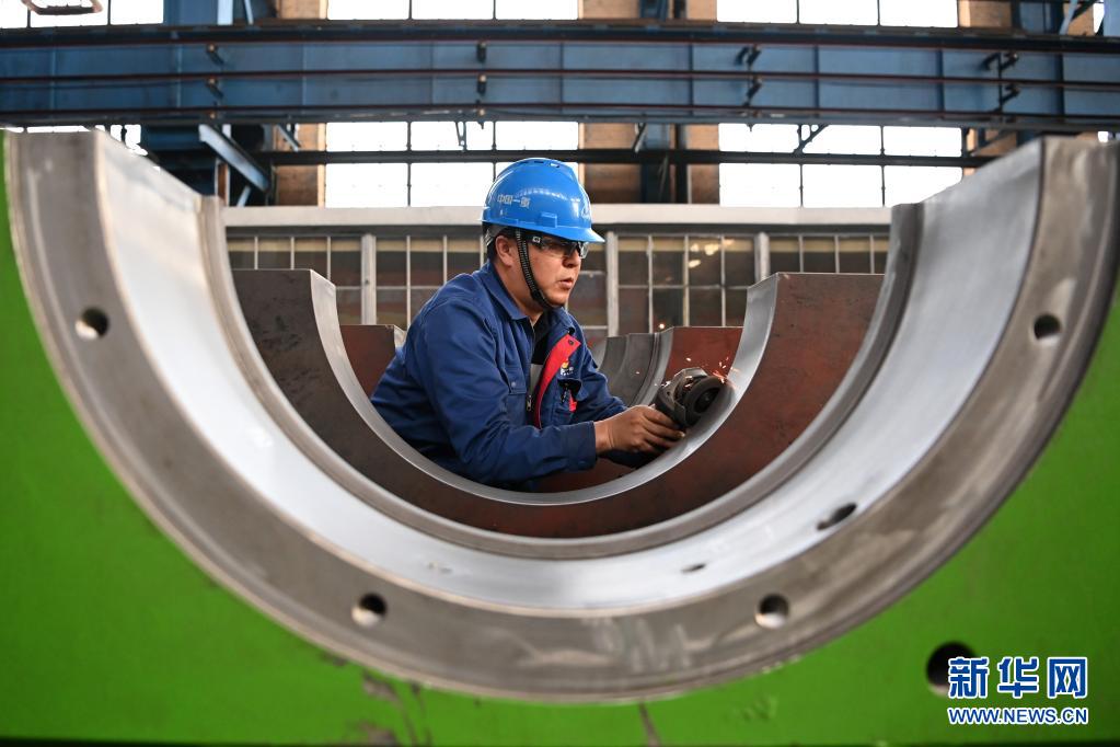 中国一重装配钳工隋毅在进行生产作业。“70后”隋毅,是一重的“首席技能大师”,曾荣获两项国家发明专利(4月20日摄)。