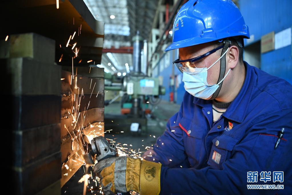 哈电集团哈尔滨电机厂有限责任公司“80后”装压工刘志栋在水电分厂作业(4月8日摄)。