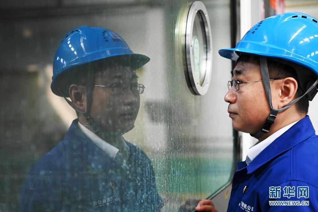 哈电集团哈尔滨汽轮机厂有限责任公司数控铣工董礼涛在数控铣床旁作业。“70后”董礼涛曾获“全国劳动模范”“全国技术能手”等称号,先后有120余项技术应用到生产实践当中,为企业创造了近亿元的经济效益(4月25日摄)。