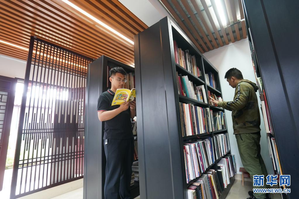 4月27日,在南京市江宁区禄口街道曹村村,村民在“永和书院”阅读。