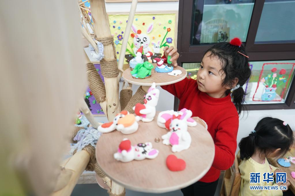 4月27日,在南京市江宁区禄口街道曹村村幼儿园,小朋友上手工课。