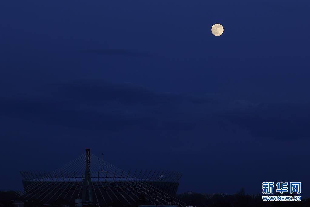 4月26日,“超级月亮”出现在波兰华沙的国家体育馆上空。
