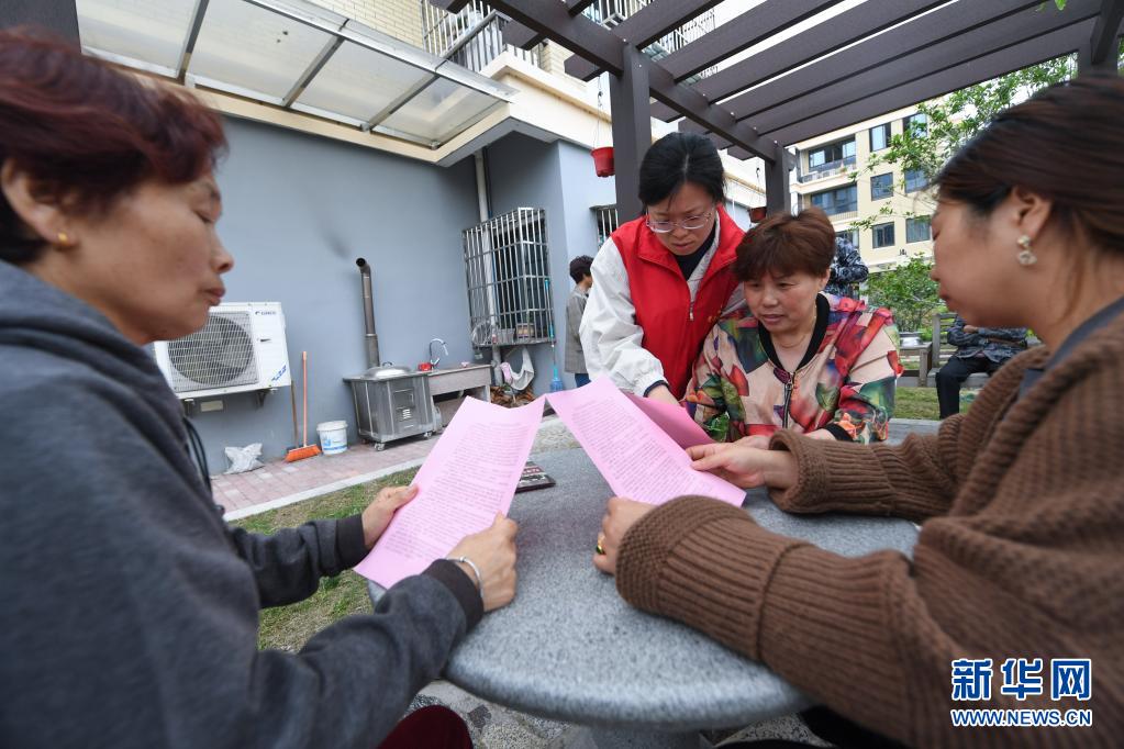 4月27日,东林镇社会事务办工作人员在东明村新村向村民进行新冠病毒疫苗全民免费接种宣介。