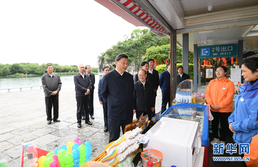 4月25日至27日,中共中央总书记、国家主席、中央军委主席习近平在广西考察。这是26日下午,习近平在桂林市象鼻山公园考察调研。 新华社记者 申宏 摄