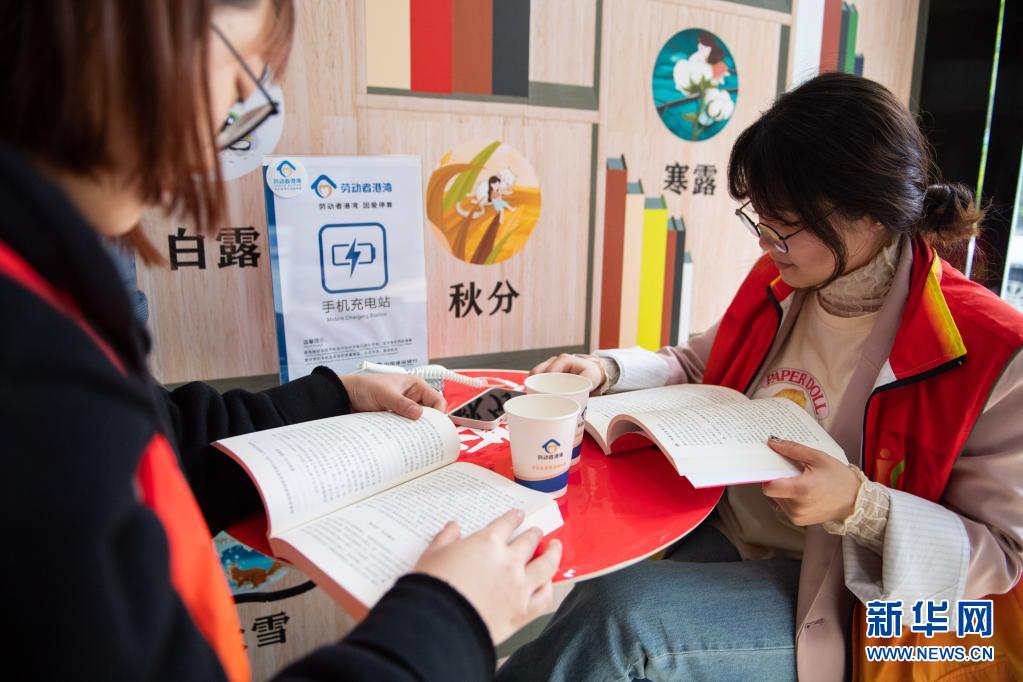 4月27日,在建行常德市朗州路支行“劳动者港湾”,周边群众在这里阅读书籍。