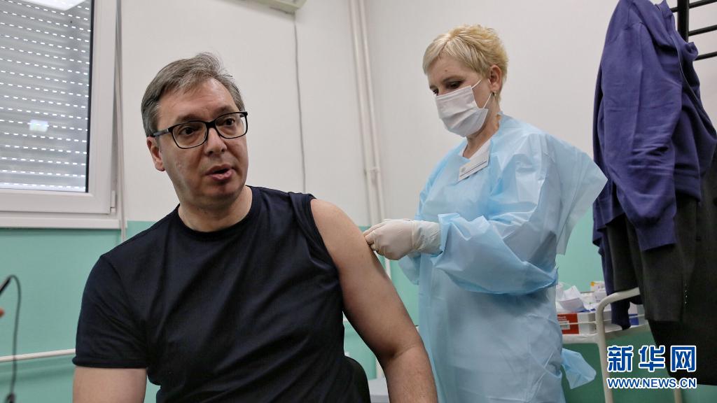 当地时间4月27日中午,塞尔维亚总统武契奇在塞南部多列瓦茨市普科瓦茨村卫生防疫站接种了第二剂中国国药集团新冠灭活疫苗。