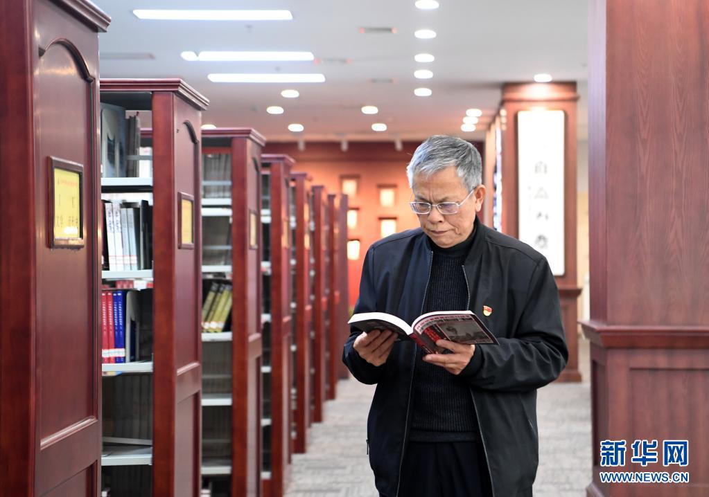 4月26日,黄德耀在河南省信阳市新县大别山干部学院图书室查阅资料。