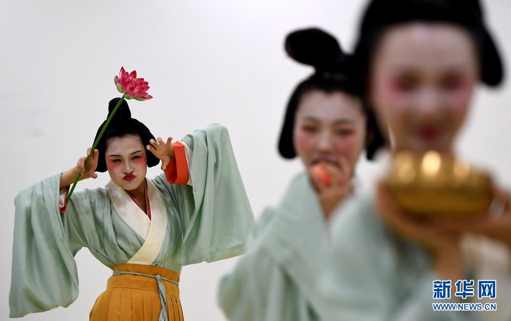 演员在化装结束后拍摄花絮(4月25日摄)。新华社记者李安摄