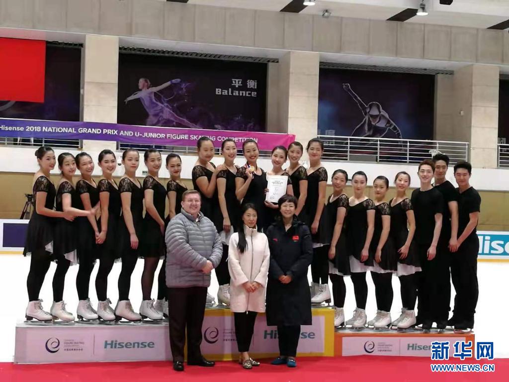 甜甜(左三)与队友在2018全国花样滑冰大奖赛上的合影(资料照片)。