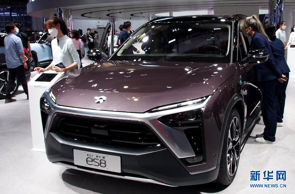 4月28日,观众在上海车展现场参观国产蔚来智能电动车。
